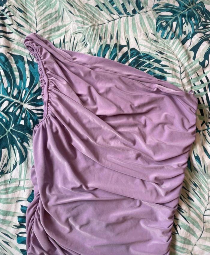 Robe longue violette/ mauve . Une seule bretelle Trop grande pour moi . Conviens plus à du 38… Très élégante idéal soirée /mariage Elle est neuve jamais portée, juste lavée