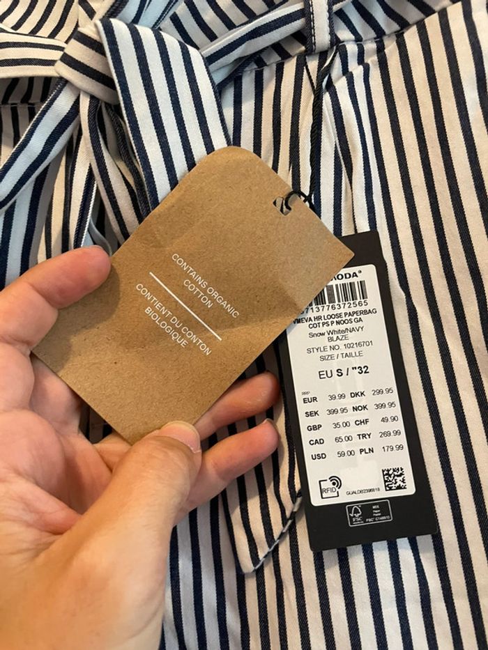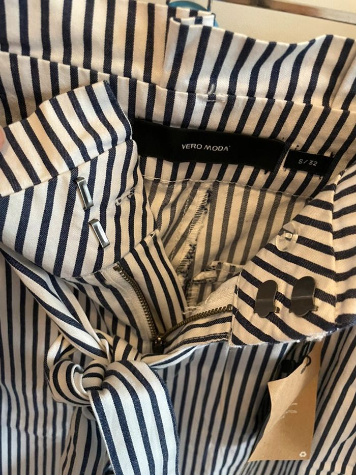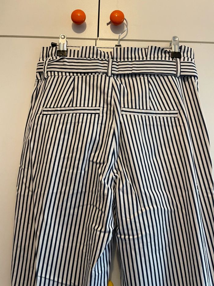 Pantalon à pinces rayé et sa ceinture De la marque vero moda 50% de coton biologique 📏 taille S avec 36 cm à la taille 36 cm à La Fourche 99 cm de long et 14,5 à la cheville De nombreux autres articles pour créer un lot