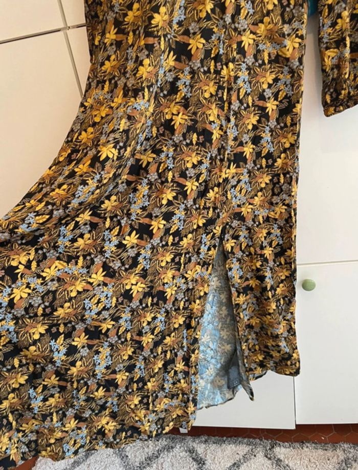Robe longue noire fleurie neuve Taille S 38 cm à la taille 129cm de long ⚠️ attention la fermeture éclaire est cassée ou coincée . À faire réparer ou à changer soit même d’où le mini prix Très élégante 🧶 100% viscose : tissu doux et souple , très agréable à porter Prix neuf : 59,95 📦 envoi rapide et soigné ✨ lot possible avec d’autres articles de ma galerie voir juste en dessous de l’annonce