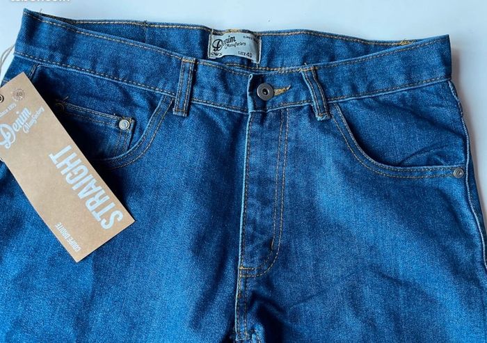 🍀 Jean coupe droite taille 40 Denim 📏 Dimension : au niveau taille 40x2 cm Longueur 107 cm 80 cm longueur jambe ✅ 60%coton 40 % polyester ‼️ jean neuf dans son emballage de la marque Manufactory ⚠️ accepte les offres raisonnable ⚠️Réduction sur lot dans ma galerie 📮envois rapide et soigné