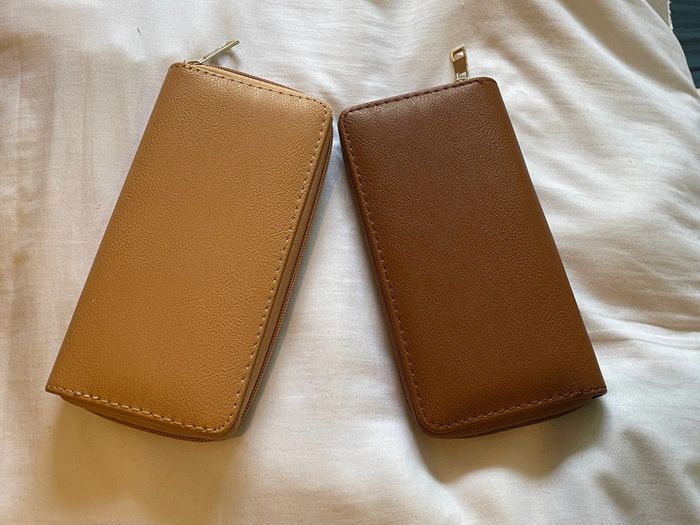 Lot de 2 porte-feuilles marron et moutarde 19x10 cm