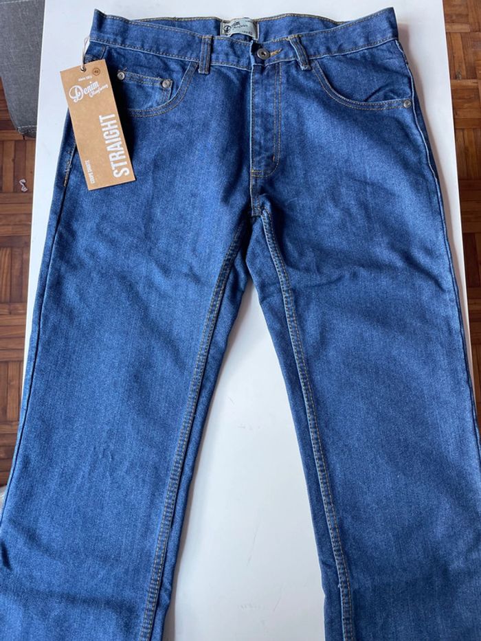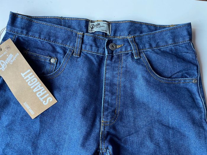 🍀 Jean coupe droite taille 40 Denim 📏 Dimension : au niveau taille 40x2 cm Longueur 107 cm 80 cm longueur jambe ✅ 60%coton 40 % polyester ‼️ jean neuf dans son emballage de la marque Manufactory ⚠️ possibilité d’en avoir plusieurs identique ⚠️Réduction sur lot 📮envois rapide et soigné