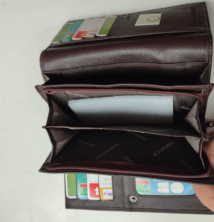 Portefeuille marron en cuir de vachette de la marque éléphant d’or. 📏 Dimensions plié 17 cm x 10 cm, 🎁 vendu dans son coffret, parfait pour un cadeau de qualité