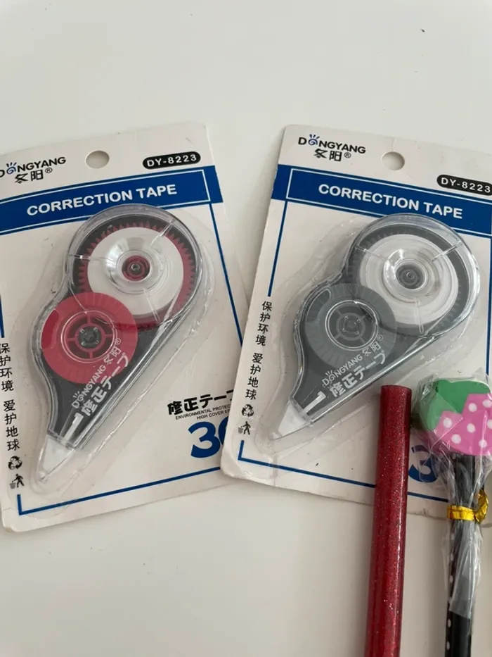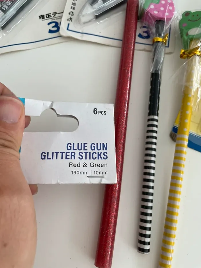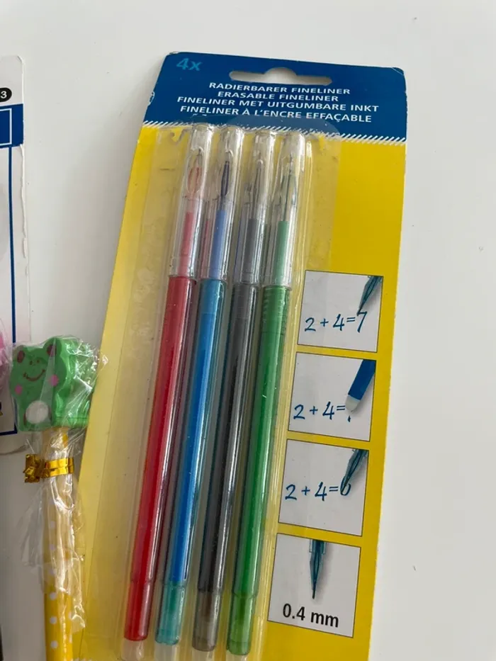 Mini set de rentrée scolaire composé de: - 2 crayons HB coloré + sa gomme fantaisie - 1 gomme en stick glitter - 2 rubans correcteur - blancs - paquet de 4 stylos effaçables Lot possible avec d’autres annonces ✅ réduction sur lot activité