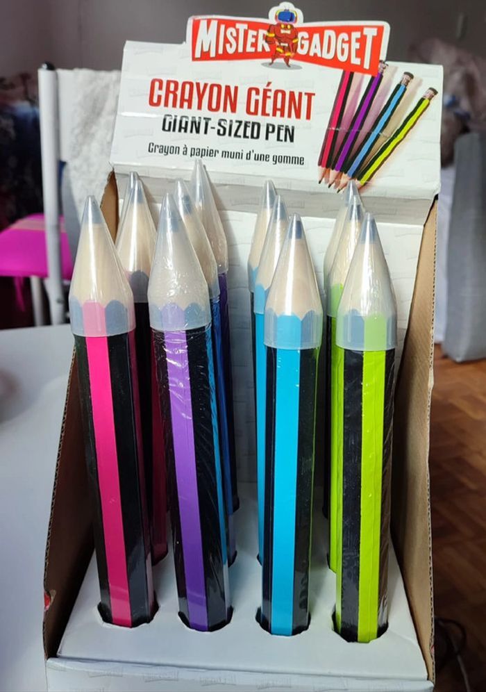 Énorme crayon très amusant de par sa taille . 37 cm / 3 cm Neuf sous blister Plusieurs couleurs disponibles, voir dernière photo: rose bleu et vert