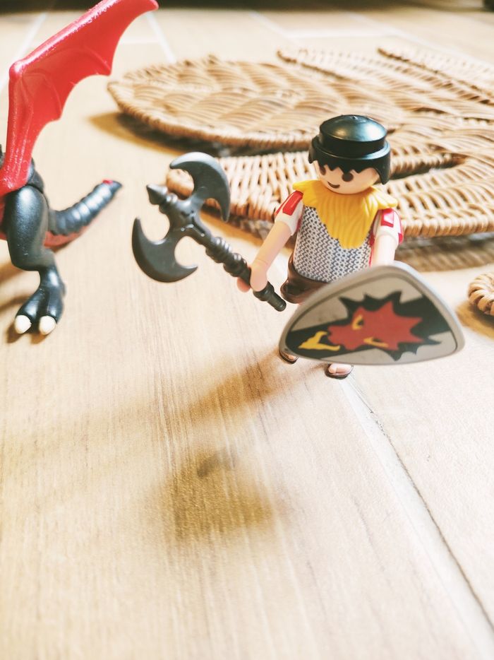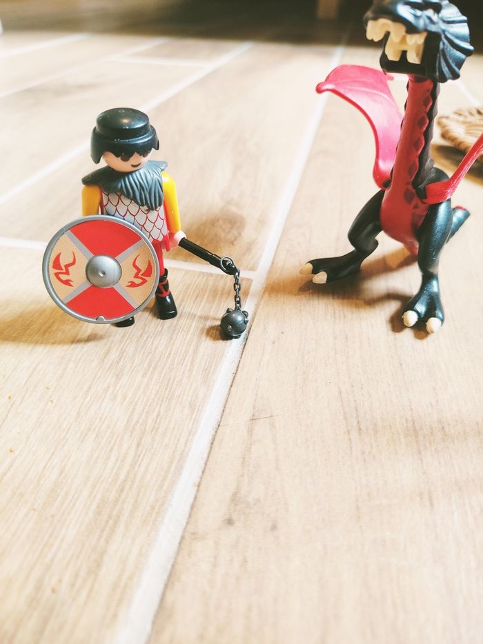 🐉Playmobil lot de figurines chevaliers avec dragon moyen age (MMS) 🎀Manque le bas de la mâchoire du dragon ❇️N'hésitez pas à créer un lot pour économiser sur les frais de port❇️