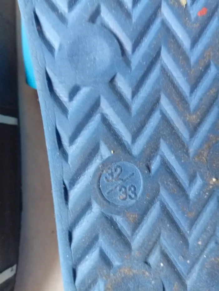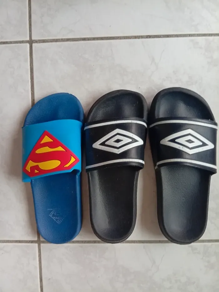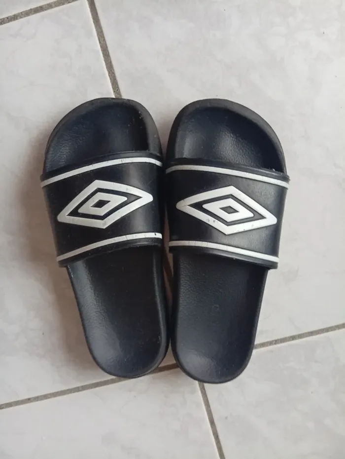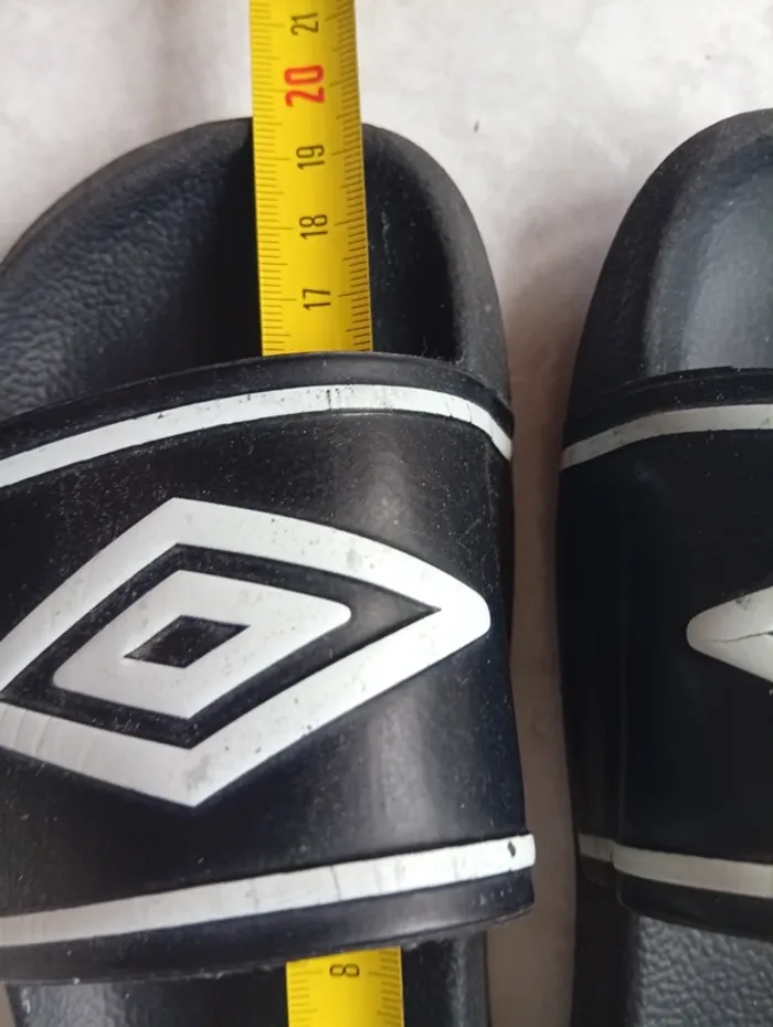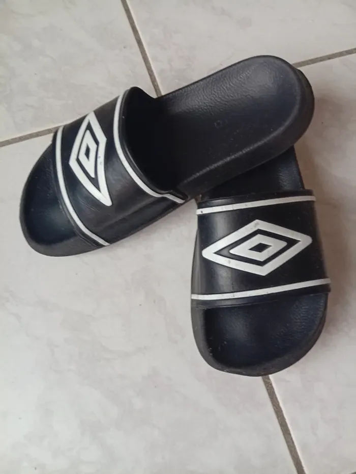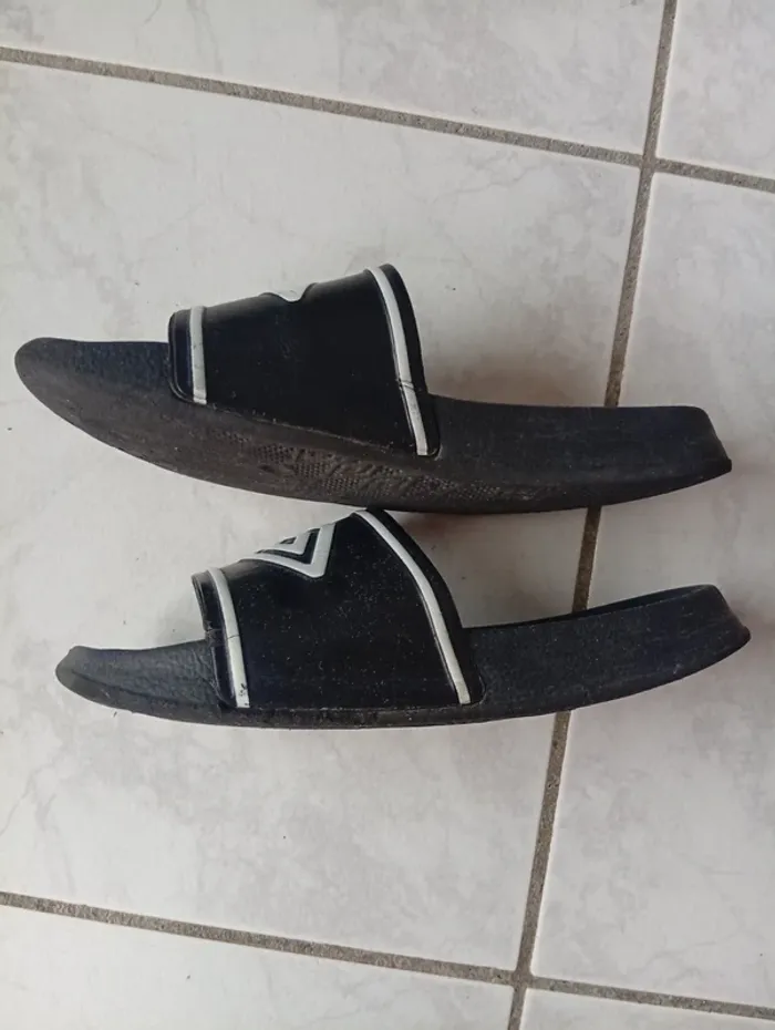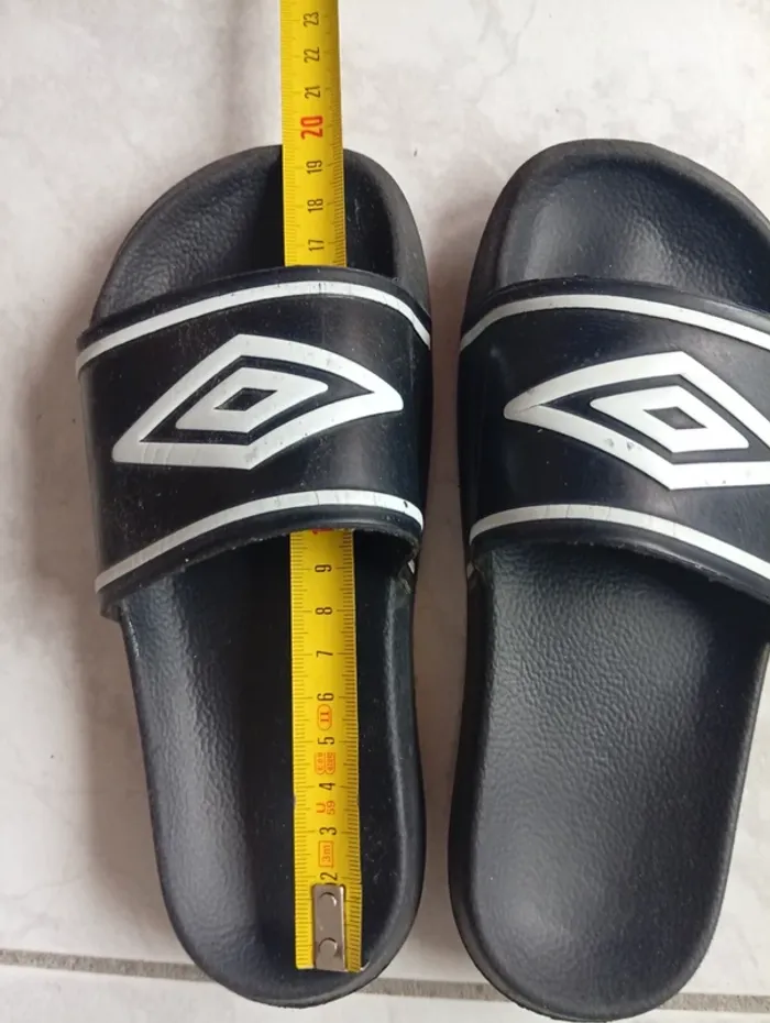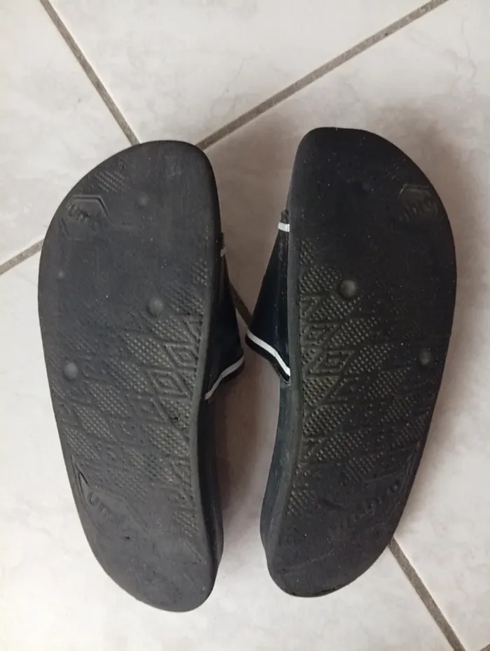 Claquette Umbro ,semelle un peu lisse . J'ai comparé avec une autre paire de taille 32/33 pour donner un ordre d'idée sur la taille .