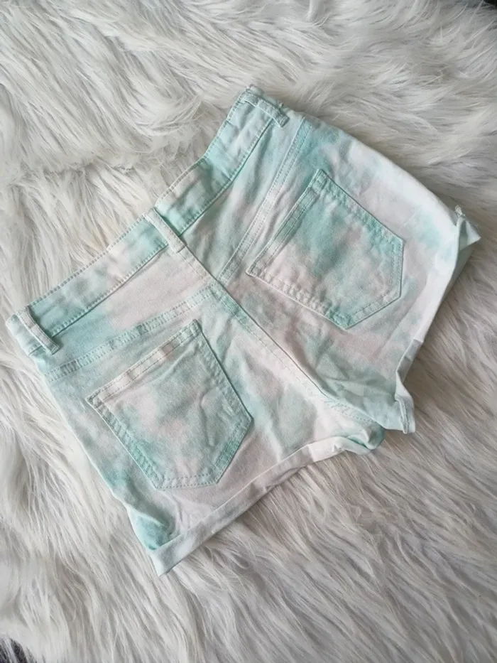 Short délavé tie and dye menthe et blanc 11-12ans, marque H&M. En très bon état. Élastiques ajustables à la taille. #marynline78fille11ans #marynline78fille12ans
