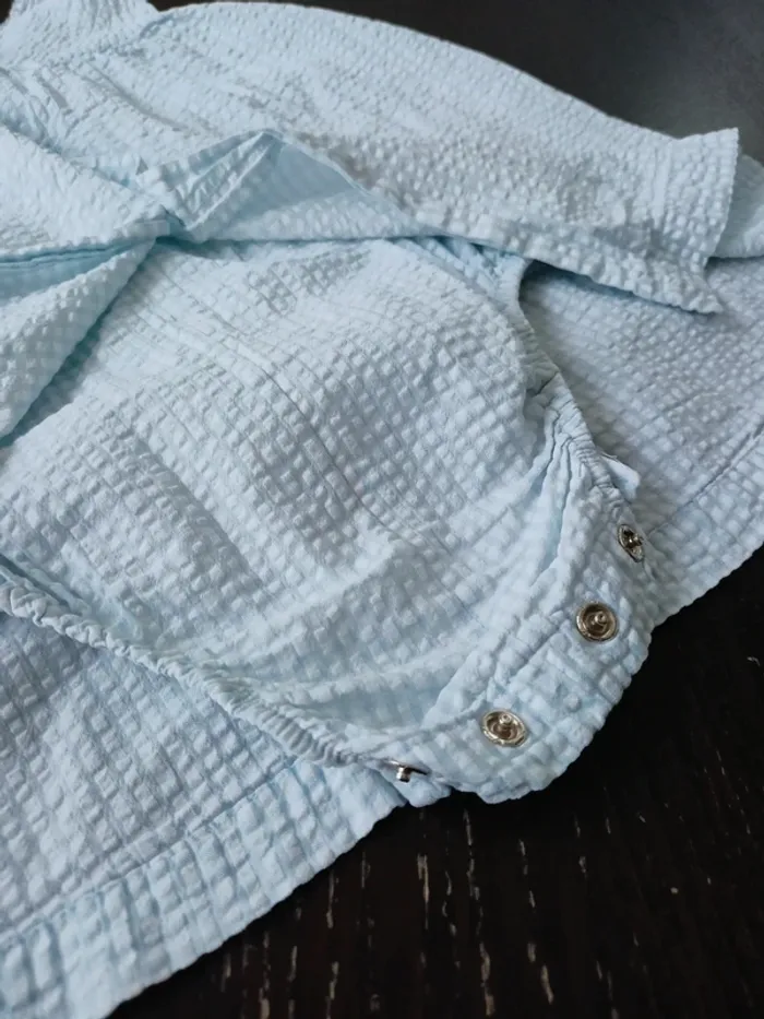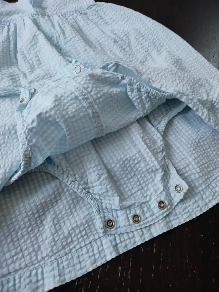 Robe tissu froissé blanc et bleu ciel Zara 9-12mois - photo numéro 6