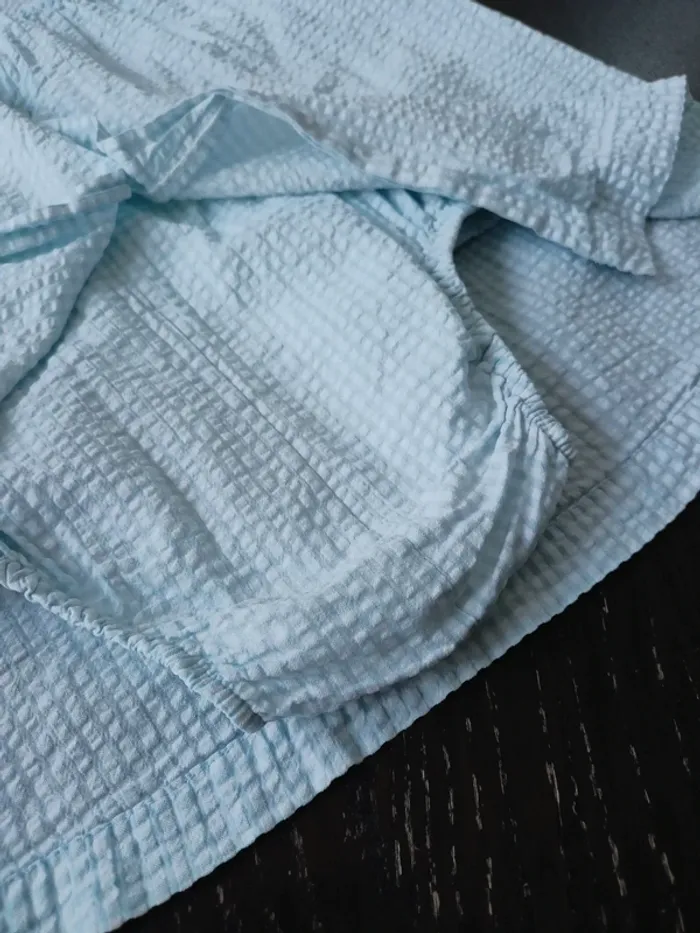 Robe tissu froissé blanc et bleu ciel Zara 9-12mois