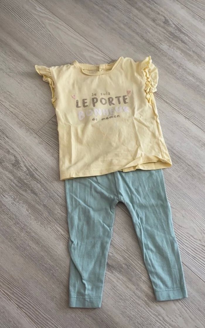 Ensemble legging et tee shirt manche courte jaune et turquoise