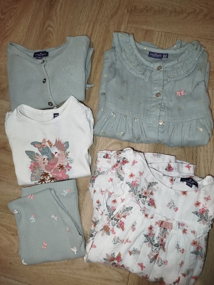 🎀 Mon voisin le perroquet 2 robes (1 bloomer) + 1 gilet + 1 legging + 1 maillot manches courtes = 3 ensembles 🎀 Sergent major 🎀 18 mois