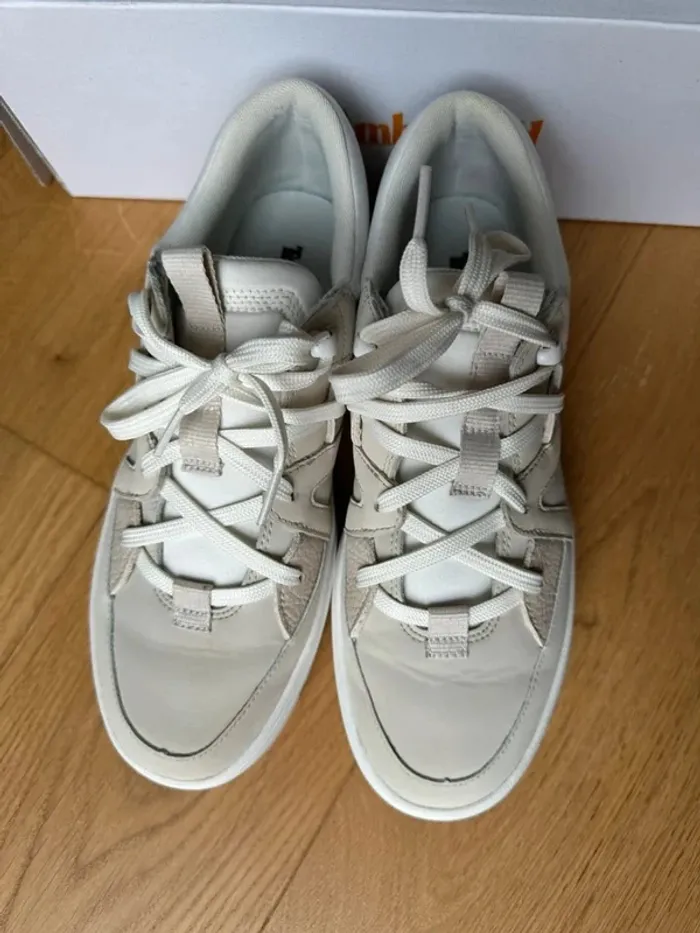 📏 Taille 40 🎨 Couleur : Blanc cassé 👟 Portées 2 fois seulement 📦 Vendues avec boîte d’origine ✨ Excellent état