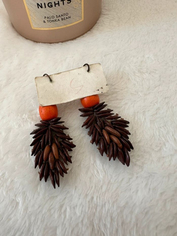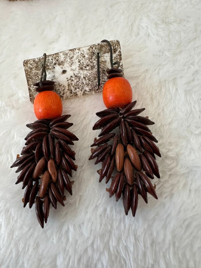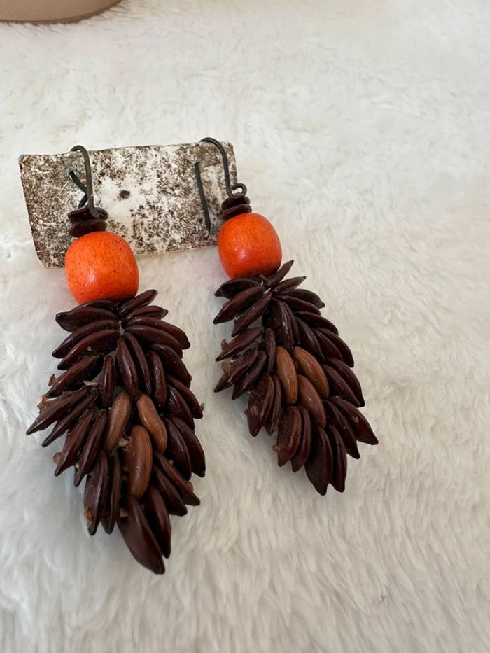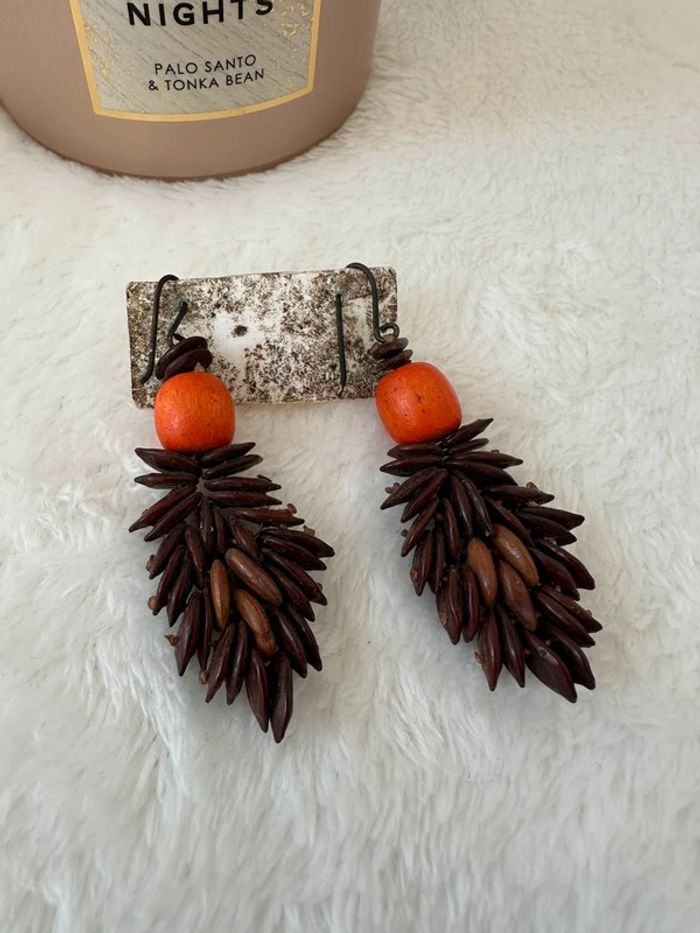 Boucles d’oreilles ethniques artisanales Perles naturelles & graines exotiques - photo numéro 1
