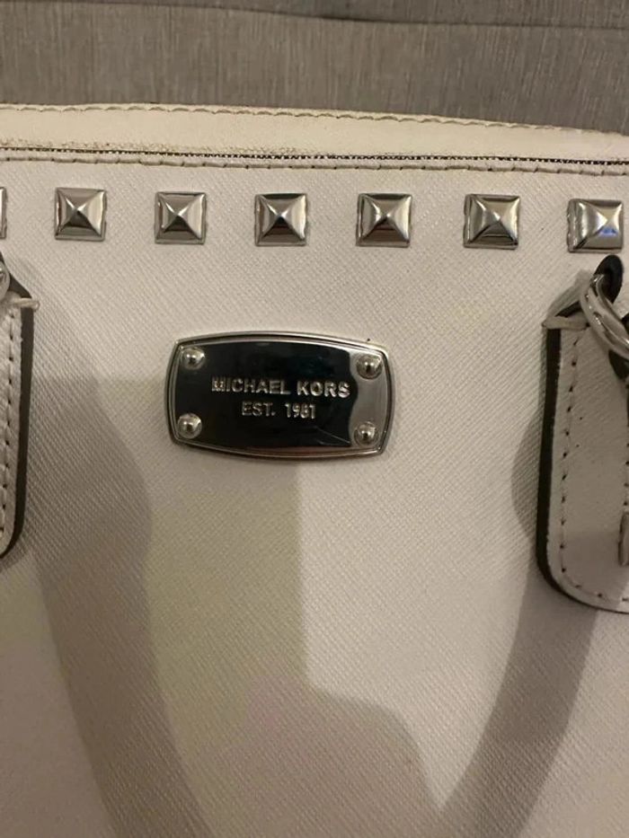 Il a été utilisé plusieurs fois. Quelques imperfections (voir les photos) tâches jaunâtres, le cuir un peu abimé sur le poignet (voir les photos) #sacmichaelkors #sacmichaelkorsauthentique #michaelkors #michaelkorssacbandouliere #sacàbandoulièrefemme