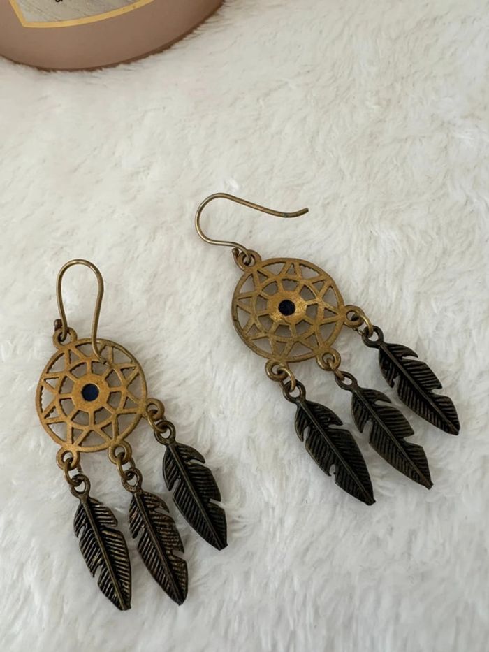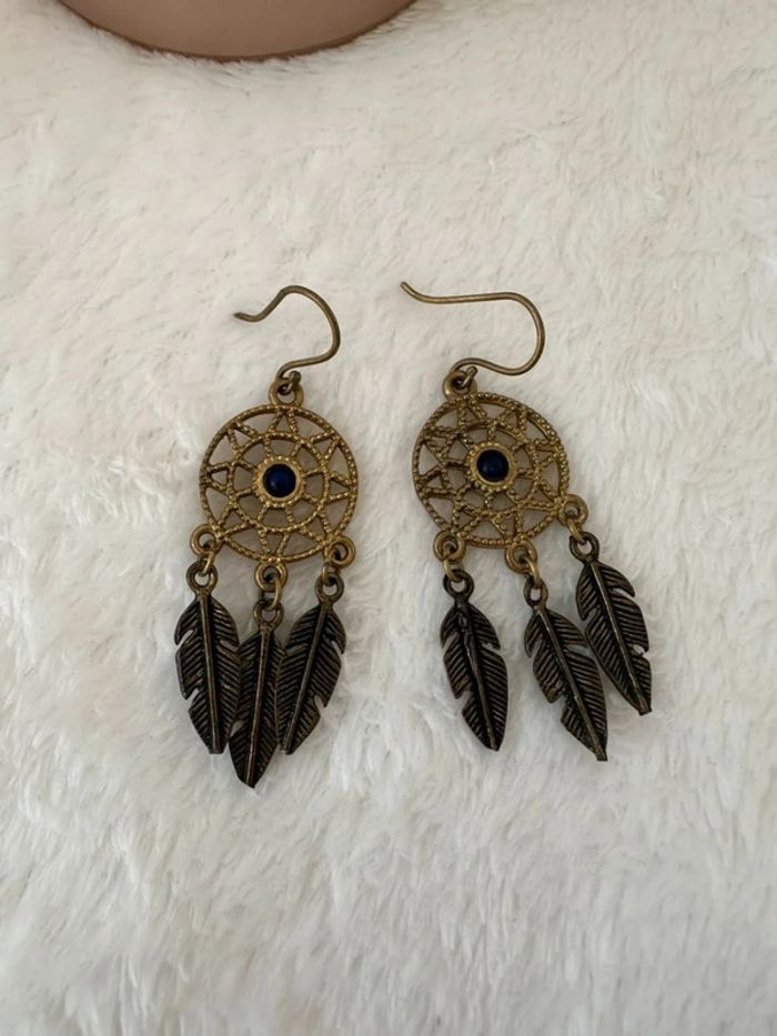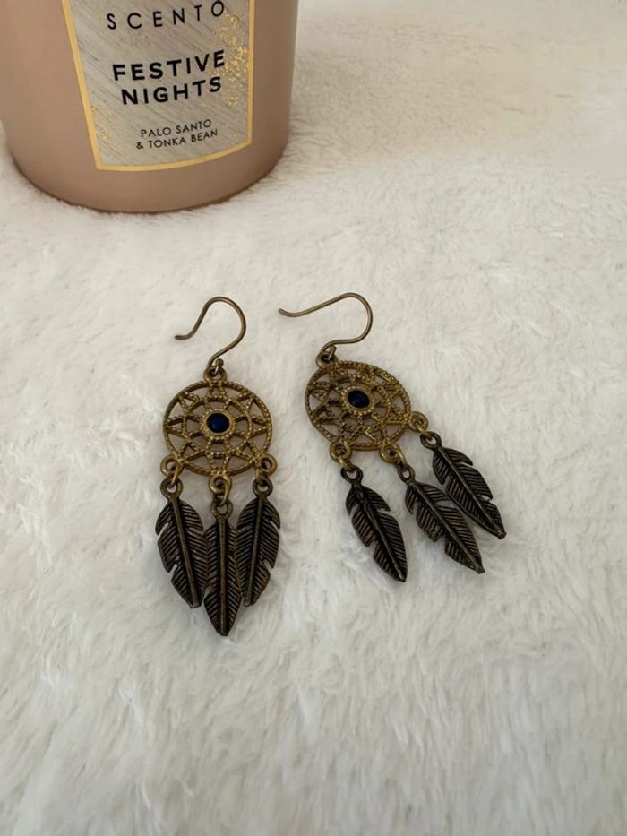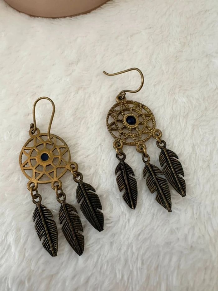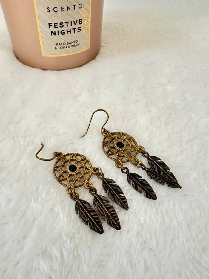 Sublimez votre look avec ces boucles d’oreilles pendantes inspirées des attrape-rêves, en métal bronze vieilli. Chaque boucle est ornée de trois plumes détaillées et d’un motif central ajouré avec une perle bleue foncée. Parfaites pour un style bohème, ethnique ou festival. Légères et faciles à porter, elles apporteront une touche originale à toutes vos tenues État : Très bon, peu portées Idéal pour offrir ou se faire plaisir #bohème #vintage #attraperêves #bijoux #bouclesdoreilles #boho #ethnique #plumes #accessoiresfemme #vintedfrance
