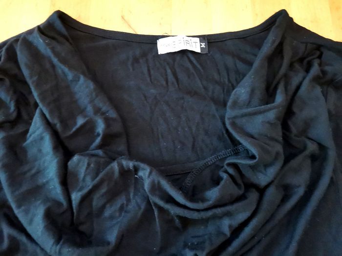 Tunique "Esprit", en tissu couleur noir, manches longues, à col montant tombant, taille S-M, tbé.