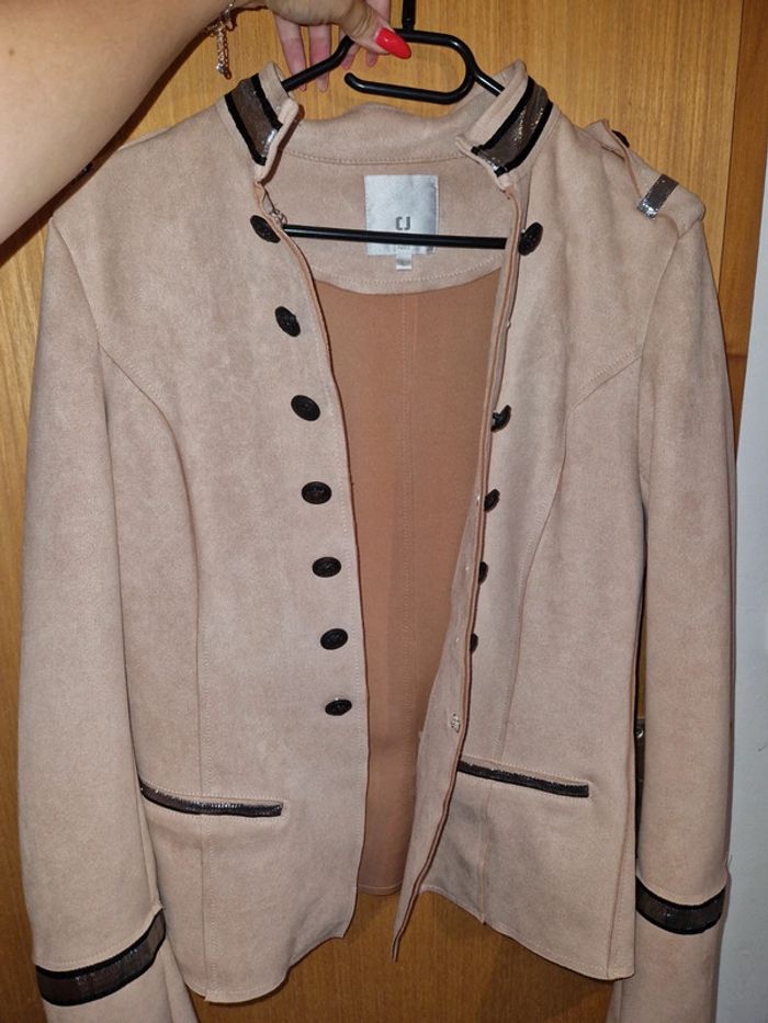 Blazer en daim taille L Rose pale Très bon état Juste deux boutons à prévoir #mo15112011_vetementsfemmetaille40 #mo15112011_vetementsfemmetaille42