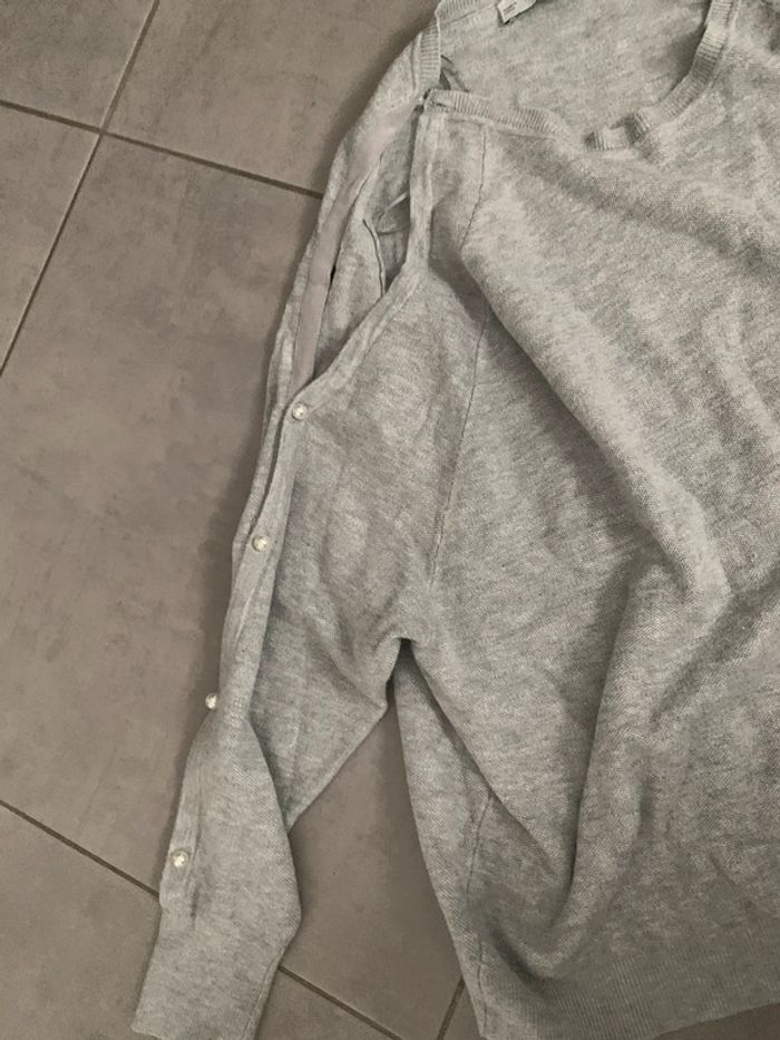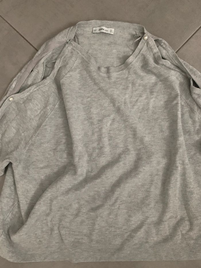 pull gris chine cool rom avec manche avec perle blanche zara taille L
