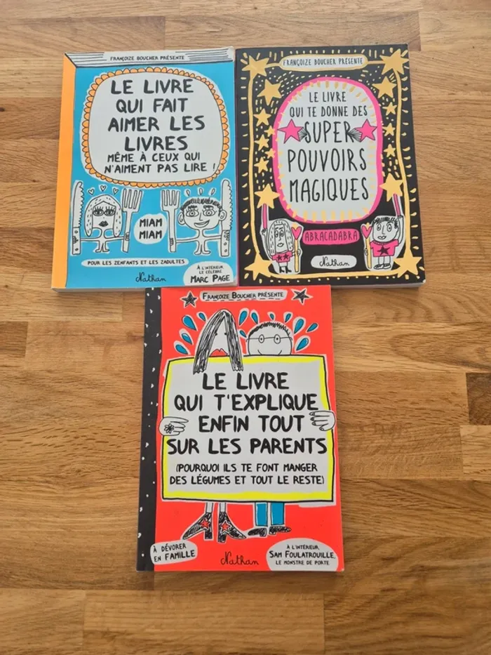 Le livre qui fait aimer les livres même à ceux qui n'aiment pas lire Le livre qui te donne des super pouvoirs magiques Le livre qui t'explique enfin tout sur les parents 🌟 Merci pour votre visite sur ma boutique 🌟 Pensez à jeter un œil à mes autres annonces pour composer un joli lot et profiter d’une remise sympa 🤗 Vous pouvez aussi passer une commande groupée avec votre entourage pour partager les frais de port et faire encore plus d’économies 📦 📚 Une petite librairie bien remplie, ça peut ressembler à une chasse aux trésors… 🧭 mais promis, je vous aide à les trouver ! Si vous cherchez un thème en particulier ou si vous voulez plus de photos pour vous aider à choisir, dites-le-moi, je me ferai un plaisir de fouiller dans les rayons pour vous ✨️