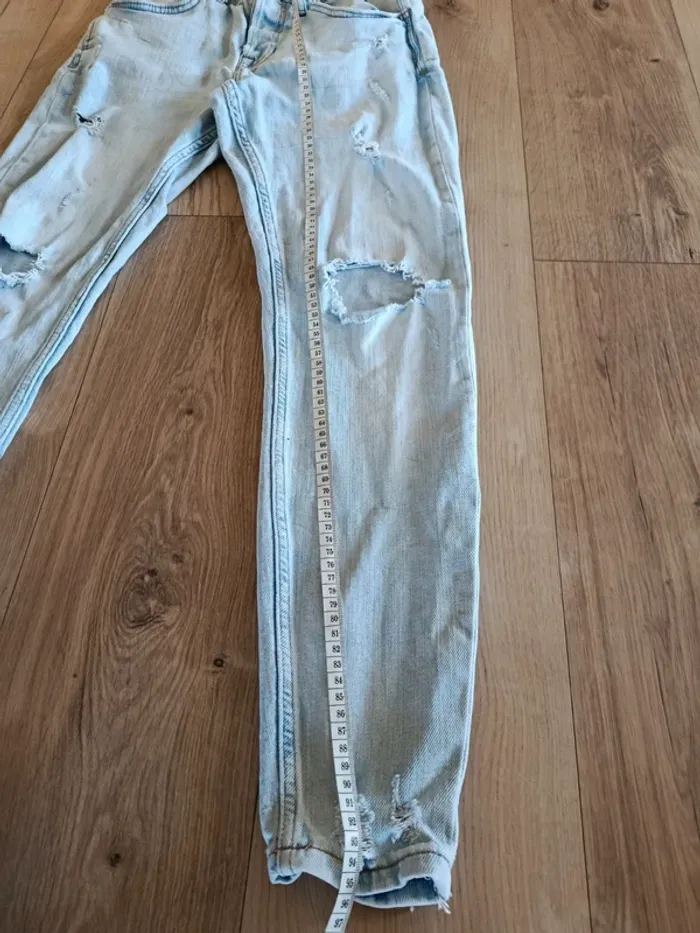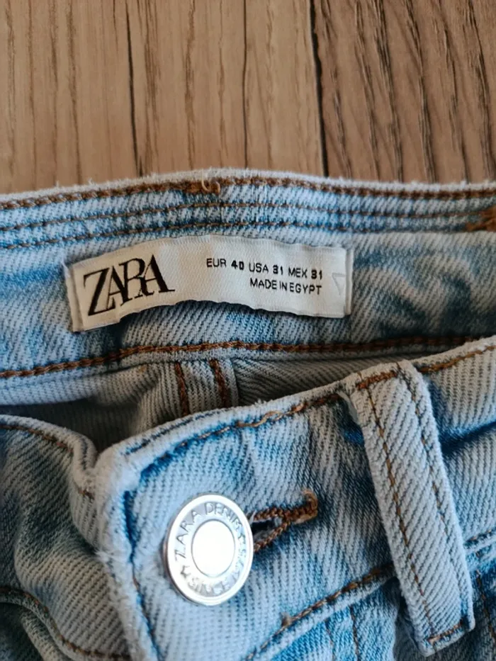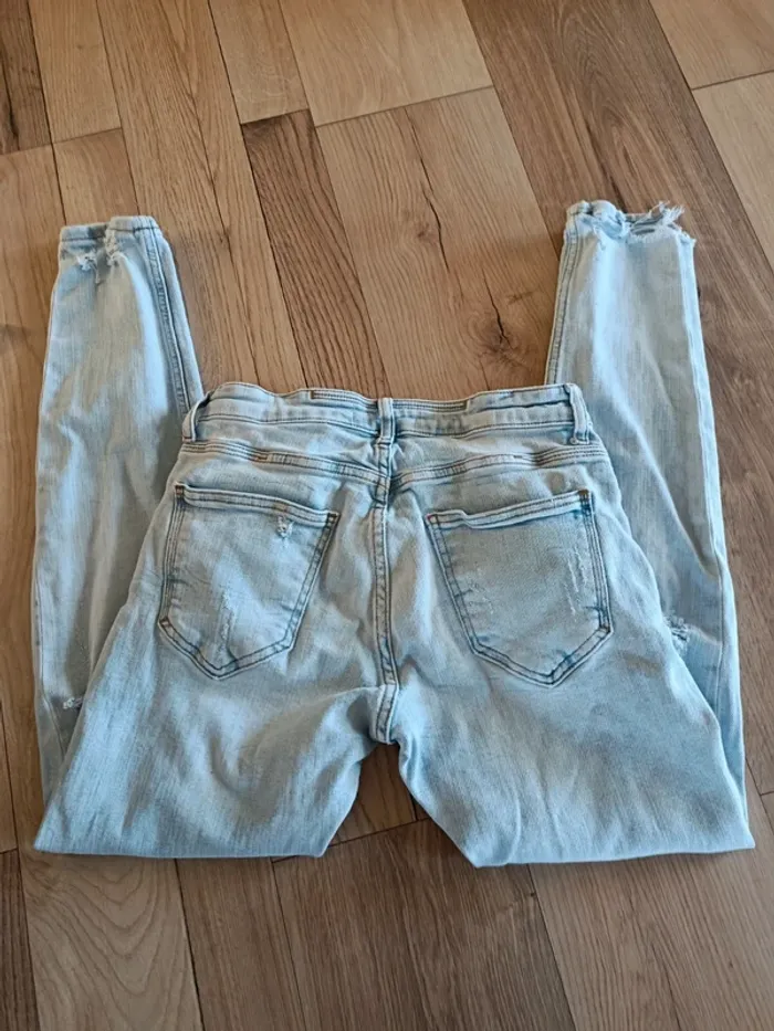Jean bleu clair troué Zara taille haute taille 38 excellent état. Indiqué taille 40 mais correspond plus a un 38. Voir les mesures en photos #jeanzara #zara #apache_54_woman_taille_m