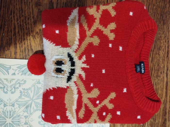 Magnifique pull de Noël petite fille Âge : 6ans Motif : cerf avec nez rouge (pompon) Marque : Kiabi État : excellent état proche du neuf