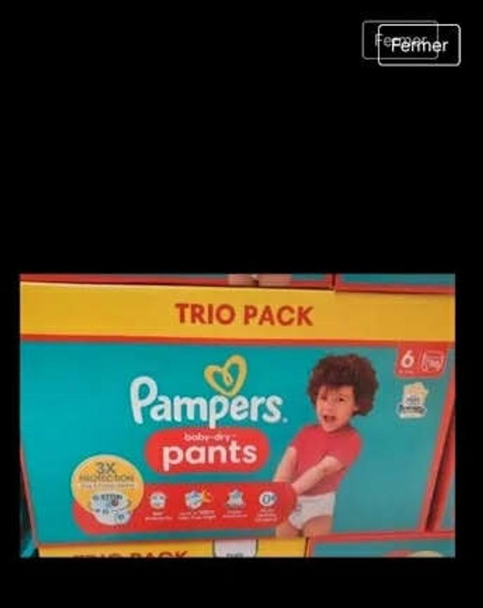 96 couches culottes Pampers pants taille 6 à 40€ plus code promo supplémentaires ça revient 28€