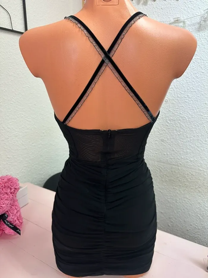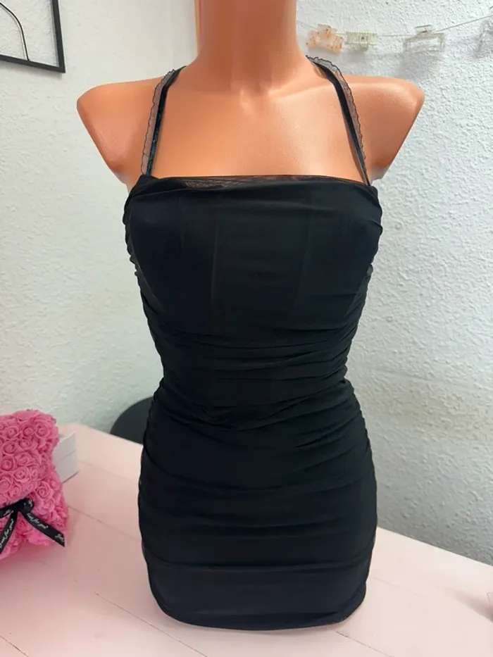 Robe drapée noire dos nu Bershka taille S - photo numéro 1