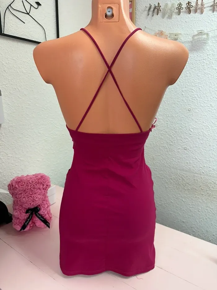 Robe rose foncée drapée Pull&Bear taille S - photo numéro 1