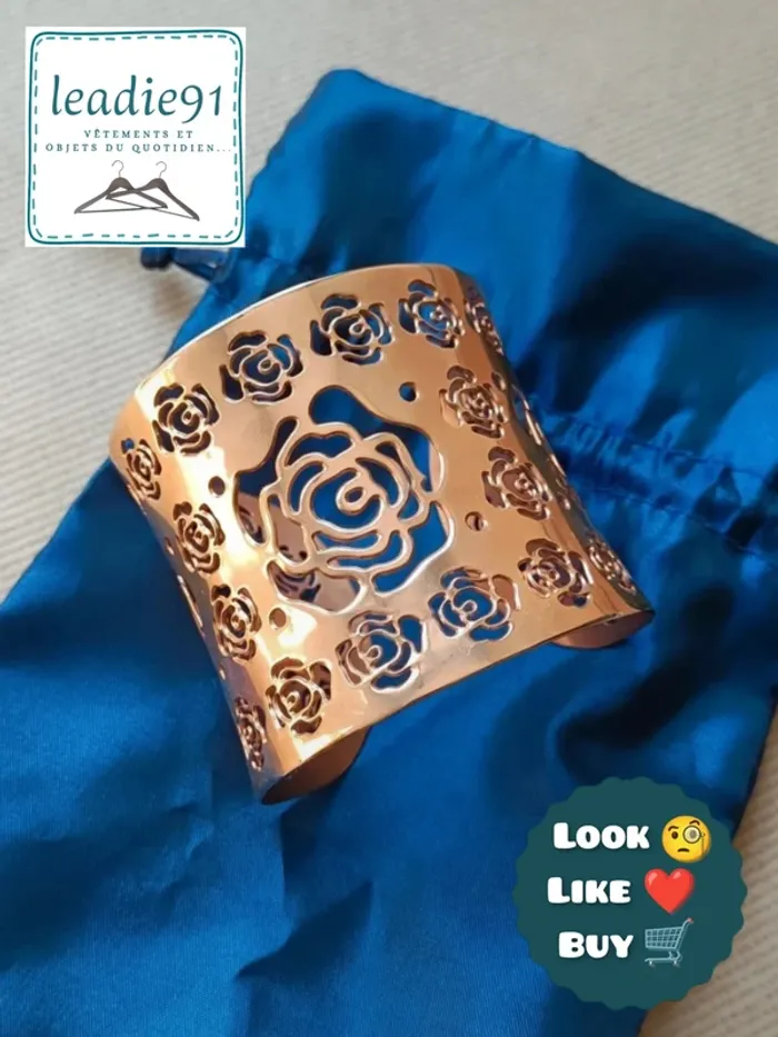 🎁​ idée cadeau = avec étui pochette en tissu bleu 📄 en cuivre (ou simili) travaillé et ajouré avec des roses et points 6 x 6 cm 💡 s'ajuste au poignet ​🖱️ Tous les articles de cette catégorie #leadie91bijouxfemme #leadie91neuf #leadie91cadeau ---------------------------------- 🔍 Pour faciliter vos recherches #️⃣ dressing trié par # (voir mon profil) 🎛️ #leadie91dressing et filtrez vos recherches ---------------------------------- 🗄️ En vente dans mon dressing : vêtements & accessoires femme, homme, adolescente, adolescent, fille, garçon et bébé, sacs, bijoux, produits hygiène et beauté, livres, jeux, jouets, fournitures scolaires, CD / DVD, vaisselle, décoration, rangement, linge de maison... ---------------------------------- 💸 Prix raisonnables 💸💸 Réductions lot 📍 Ballancourt-sur-Essonne pour RDV 🛒 Bon shopping ~ #leadie91 ♻️ 📝 Mots clés annonce site seconde main état description couleur composition tissu taille marque saison idée défaut y2k fleur fleuri floral dessin pois rond adaptable métal remise main propre 08 membre GentleVinties 24