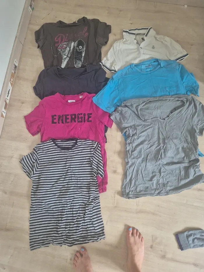 Toute taille et marque ( Brice, Jules, diesel , , énergie, zara , h&m , celio etc...) 1 pantalon 6 polos 5 pulls 2 chemises 6 tee shiet