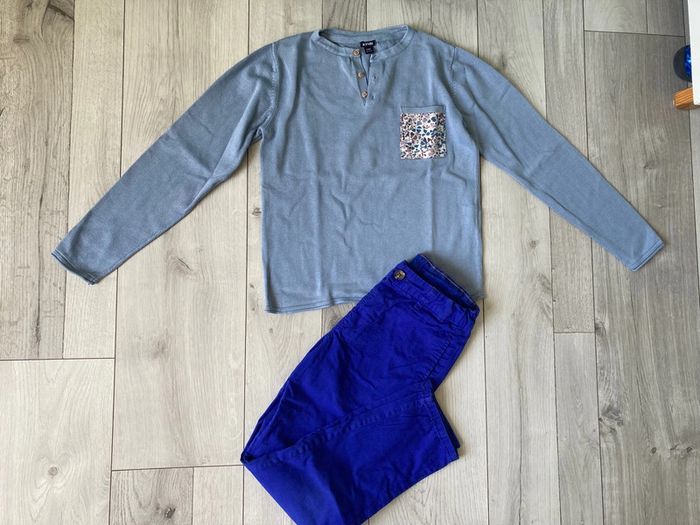 Pull fin kiabi avec poche Liberty Nina Taylor 8ans bon état car légère décoloration par endroit peu visible (je ne sais pas ce qui a fait ça) Chino bleu électrique 8ans très bon état mais genoux un peu plus clair #phelicia21garçon8ans
