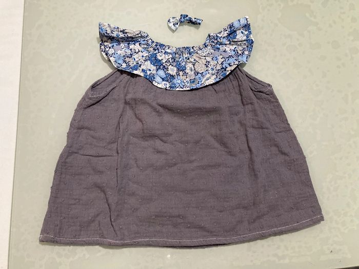 Top en plumetis gris et col volanté Liberty thorpe excellent état réalisée par une créatrice #phelicia21fille36mois