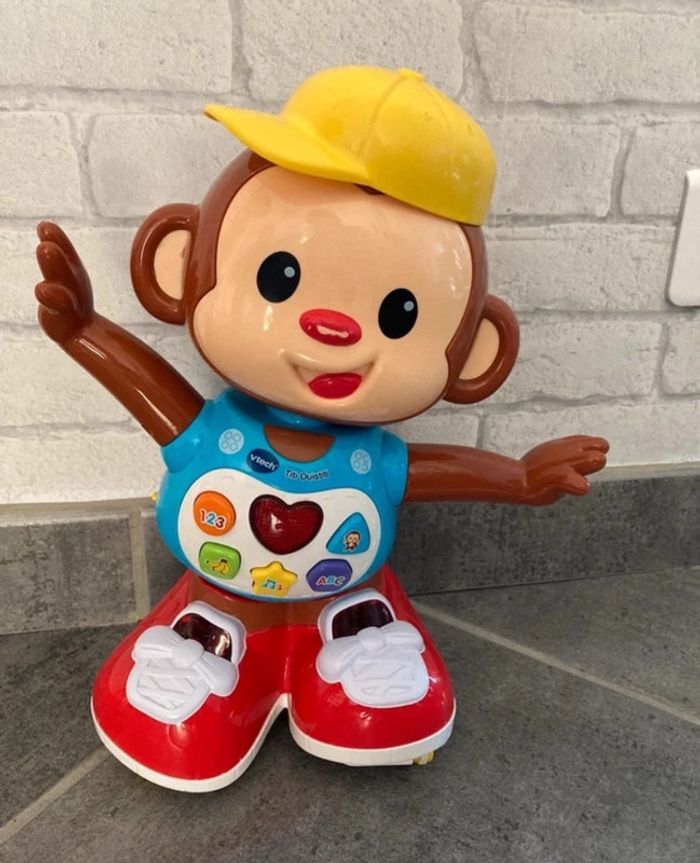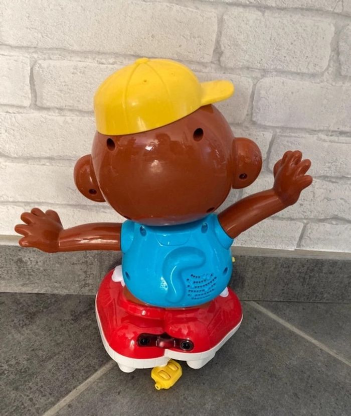 - Un mode découverte : le jouet singe danse au rythme des mélodies et invite l’enfant à chanter avec lui sur une grande variété de musiques et de chansons ;