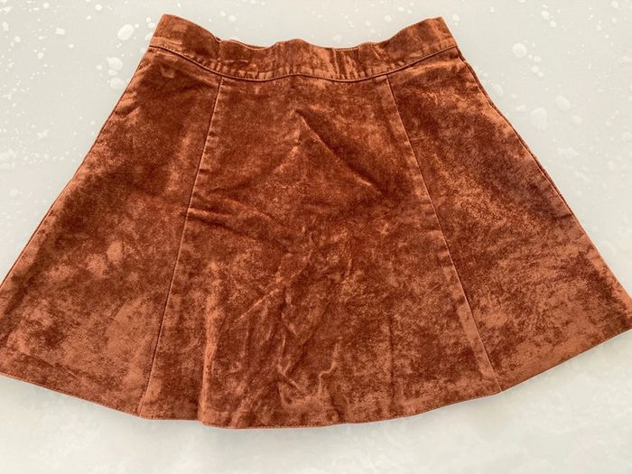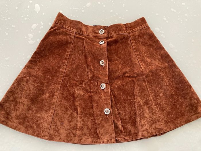 jupe camel en suedine taille 10ans couleur non uniforme due à la matière