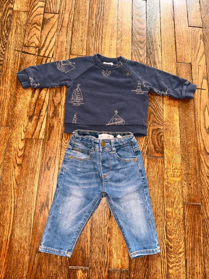 Sweat Bout’chou et jeans Zara 6 mois - photo numéro 1