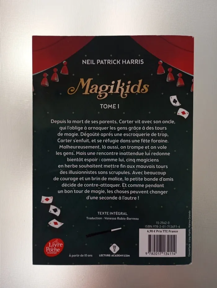 Depuis la mort de ses parents, Carter vit avec son oncle, qui l’oblige à arnaquer les gens grâce à des tours de magie. Car le jeune garçon est doué, très doué même. Dégoûté après une escroquerie de trop, Carter s’enfuit, et se réfugie dans une fête foraine. Malheureusement, là aussi, on trompe et on vole les gens. Mais une rencontre inattendue lui redonne bientôt espoir : comme lui, cinq magiciens en herbe souhaitent mettre fin aux mauvais tours des illusionnistes sans scrupules. Avec beaucoup de courage et un brin de malice, la petite bande d’amis décide de contre-attaquer. Et comme pendant un bon tour de magie, les choses peuvent changer d’une seconde à l’autre ! Éditeur ‏ : ‎ Livre de Poche Jeunesse 288 pages Dimensions ‏ : ‎ 12.5 x 1.2 x 17.8 cm Livre en très bon état #magie #magicien
