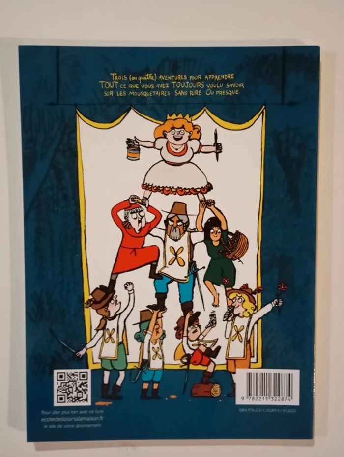 Dans ce livre vous trouverez : des épées, des plumes, des bijoux, des missives, des calèches, un roi, une reine, un cardinal, du danger, des complots, de la chance, de la bravoure et du panache, de la loyauté, de l’humour et des moustaches… Bref, des mousquetaires, et même leur école ! Vous noterez que ces trois histoires sont quatre, ce qui n’est pas le moindre hommage de ce recueil au brio d’Alexandre Dumas. Editeur : Ecole des Loisirs 54 pages Dimensions : 28 x 21 cm Âge : 6 - 8 ans Livre en parfait état Je vends d'autres livres de l'école des loisirs #phil_peg_écoledesloisirs #écoledesloisirs #humour #recueildhistoires #mousquetaires