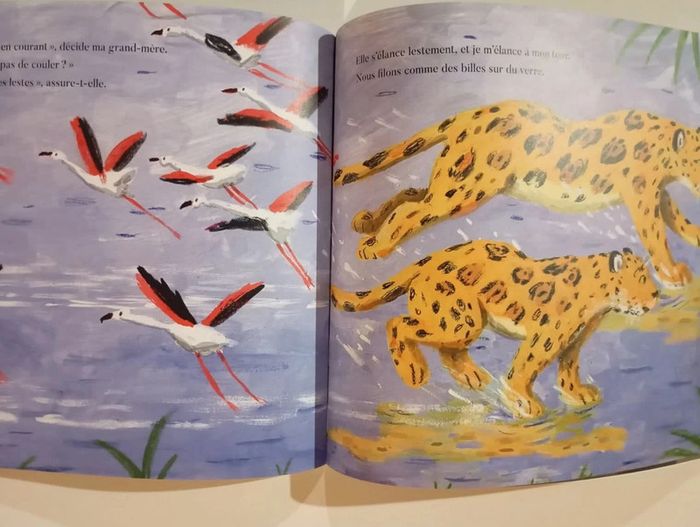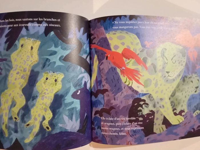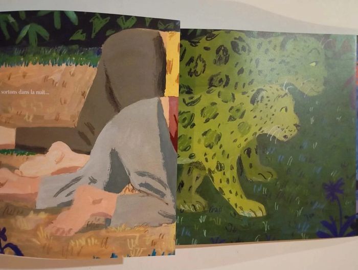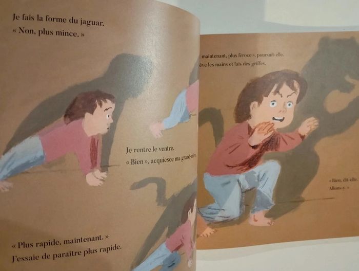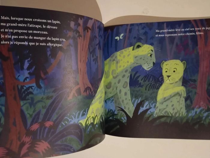 Ce n’est que la deuxième fois que ce petit garçon voit sa grand-mère venue le garder. Il n’est pas rassuré. Elle est bizarre. Mais bientôt, cette grand-mère pas comme les autres l’invite à se transformer en jaguar aux yeux d’or, et tous deux partent à travers des paysages somptueux. Féroces, intrépides, lestes, félins, comme en rêve ils gravissent des montagnes et boivent de l’eau au goût de clair de lune… Editeur : Ecole des Loisirs 33 pages Dimensions : 25 x 26 cm Âge : 3 - 6 ans Livre en parfait état Je vends d'autres livres de l'école des loisirs #phil_peg_écoledesloisirs #écoledesloisirs #grand-mère #relation enfant, adulte #imagination, fabulation #jeu #félins divers #jungle, forêt lointaine