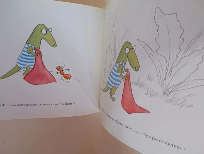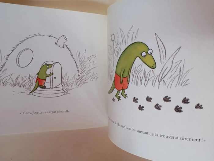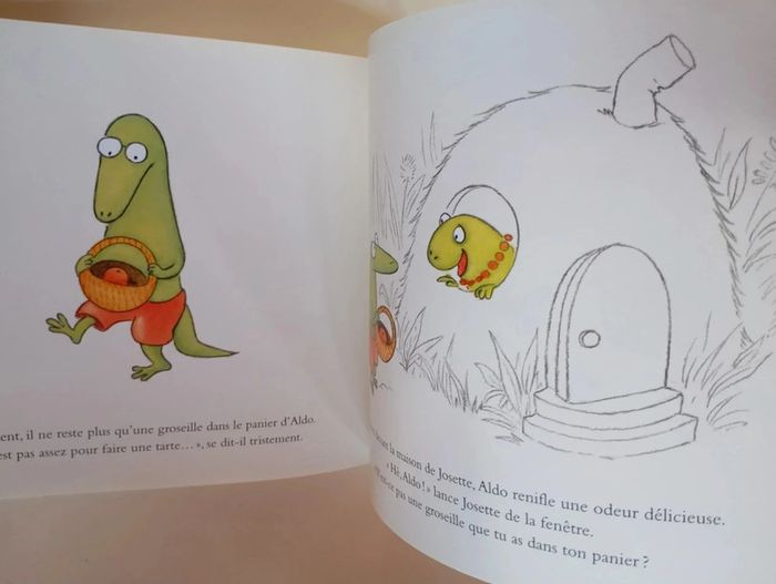 3 histoires Aldo adore faire des projets : prendre un bain de soleil, confectionner une tarte aux groseilles, faire une promenade avec son amie Josette. Mais chaque fois qu'il se promet une joie, ses plans sont contrariés. Les insectes le dérangent, tout le monde mange ses groseilles dans le panier, Josette n'est pas libre pour une balade... Heureusement, Aldo est un sage qui sait goûter l'instant présent. Après tout, un bain de lune, un gâteau de mouches et un bain de mousse avec Josette, c'est aussi le bonheur ! "Aldo, c'est moi", avoue Magali Bonniol. "Et Josette aussi bien sûr. Aldo, c'est celui qui veut toujours bien faire, mais évidemment, ça ne se passe jamais comme il l'avait prévu, alors il est déçu, ou triste. Heureusement il y a une Josette, qui préfère à toutes ces prévisions la joie immédiate d'être au monde. Alors Josette prend Aldo par la main, et c'est pourquoi ce livre est né. Certains y reconnaîtront aussi mon goût pour les noisettes, la lune et les promenades... entre autres !" Editeur : Ecole des Loisirs 32 pages Dimensions : 18 x 22 cm Âge : 3 - 6 ans Livre en très bon état Je vends d'autres livres de l'école des loisirs #phil_peg_écoledesloisirs #écoledesloisirs #amitié #campagne #lézard #magalibonniol