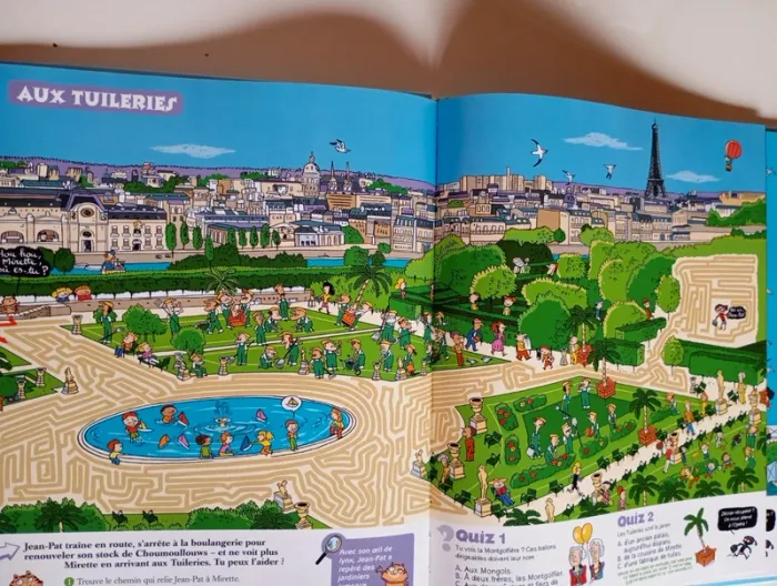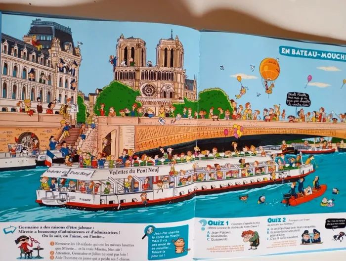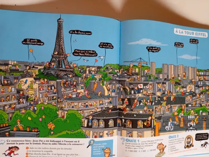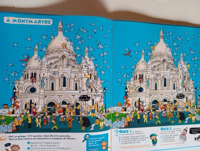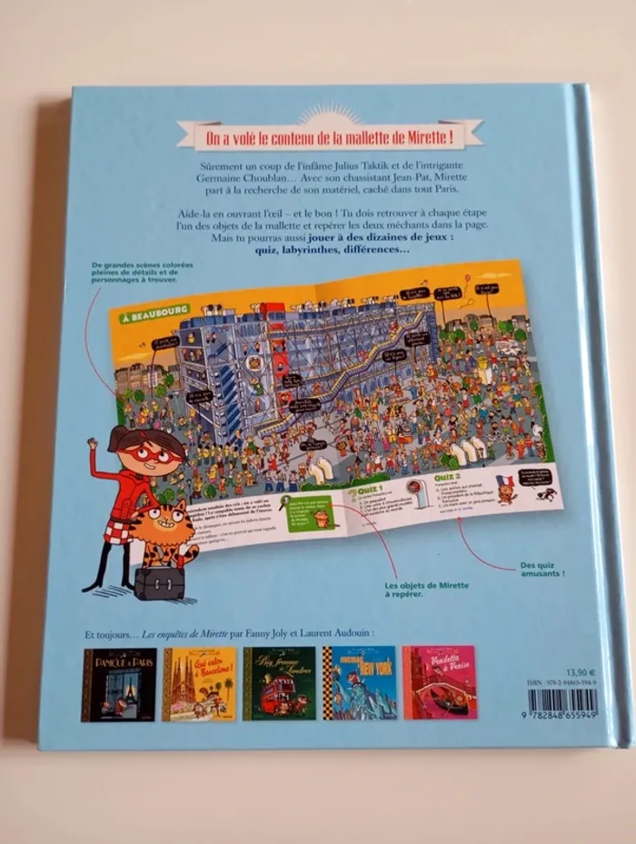 On a volé le contenu de la mallette de Mirette ! Sûrement un coup de l'infâme Julius Taktik et de l'intrigante Germaine Choublan... Avec son chassistant Jean-Pat, Mirette part à la recherche de son matériel, caché dans tout Paris. Aide-la en ouvrant l'oeil - et le bon ! Tu dois retrouver à chaque étape l'un des objets de la mallette et repérer les deux méchants dans la page. Mais tu pourras aussi jouer à des dizaines de jeux : quiz, labyrinthes, différences... Éditeur ‏ : ‎ SARBACANE EDITIONS 26 pages Âge de lecture ‏ : ‎ 6 - 8 ans Dimensions ‏ : ‎ 24 x 29 cm Livre en excellent état Je vends d'autres livres de la même collection #phil_peg_mirette #paris #enquête #mirette #LesEnquêtesDeMirette #LivreJeu #ChercheEtTrouve #LivreEnfant