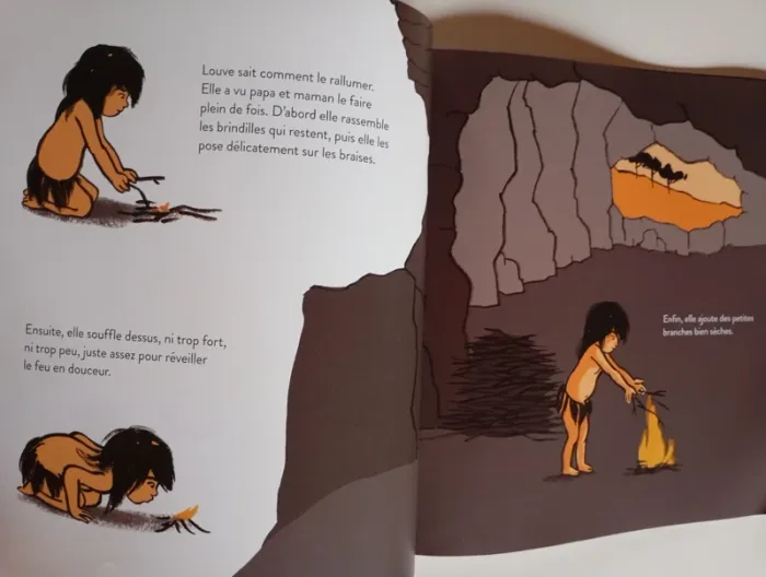 Même dans la préhistoire, il y a très très longtemps, le rêve des enfants, c'était de faire comme les grands. Louve a observé comment ses parents entretenaient le feu dans la caverne. Ce matin, elle est la première réveillée. Chouette! C'est elle qui va s'en occuper. Pour ranimer les braises, il faut souffler, puis rajouter du bois coupé. Louve sait, mais voilà Ours, son petit frère, qui voudrait s'en mêler dès qu'elle a le dos tourné... Éditeur ‏ : ‎ Ecole des Loisirs 28 pages Âge de lecture ‏ : ‎ 3 - 6 ans Dimensions ‏ : ‎ 27.5 x 0.8 x 28.7 cm Livre en très bon état Je vends d'autres livres de l'Ecole des Loisirs #phi_peg_écoledesloisirs #écoledesloisirs #préhistore #feu