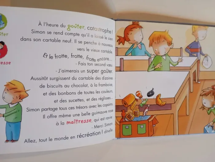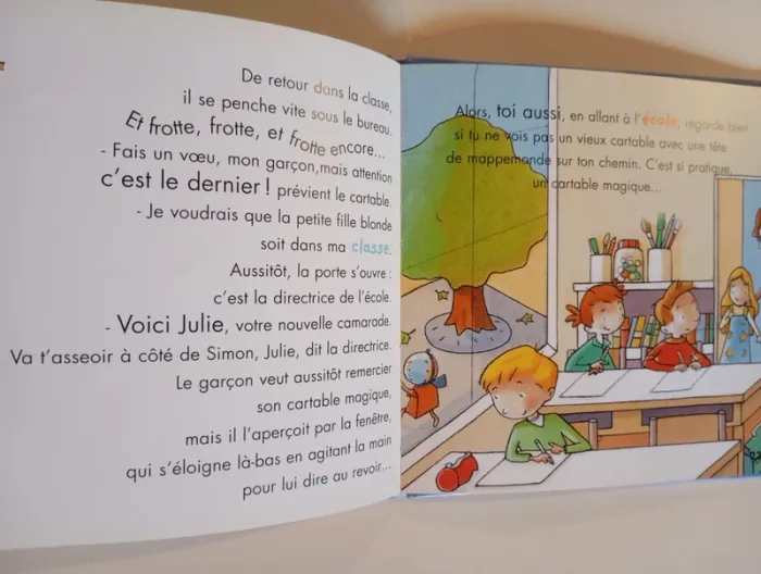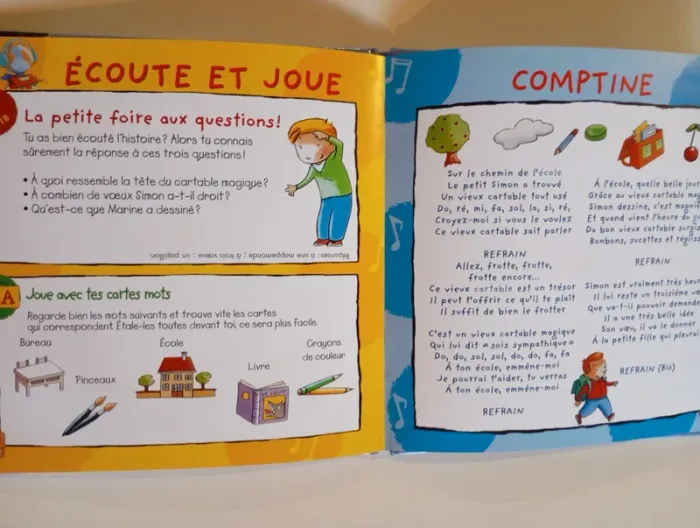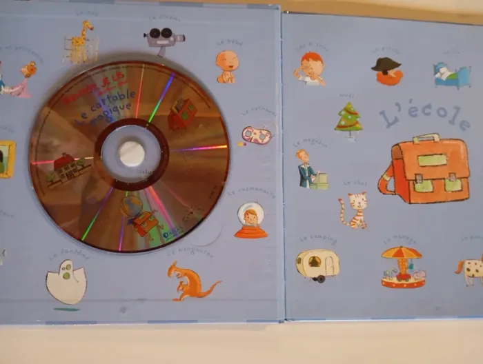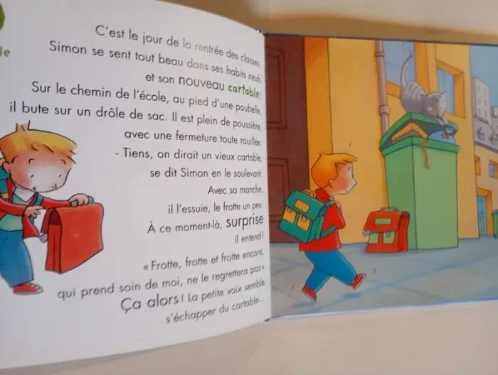 C'est le jour de la rentrée et Simon part pour l'école avec son beau cartable tout neuf sur le dos. En chemin il rencontre un vieux sac tout poussiéreux qui affirme être magique. Il supplie Simon de l'emmener avec lui dans son école. Mais faut-il vraiment croire ce cartable bizarre avec sa drôle de tête en forme de mappemonde? Éditeur ‏ : ‎ Éditions Atlas 28 pages Dimensions : 20 x 20 cm Livre et cd en très bon état Je vends d'autres livres sur l'école #phil_peg_école ou livre cd #phil_peg_livrecd #rentréescolaire #école