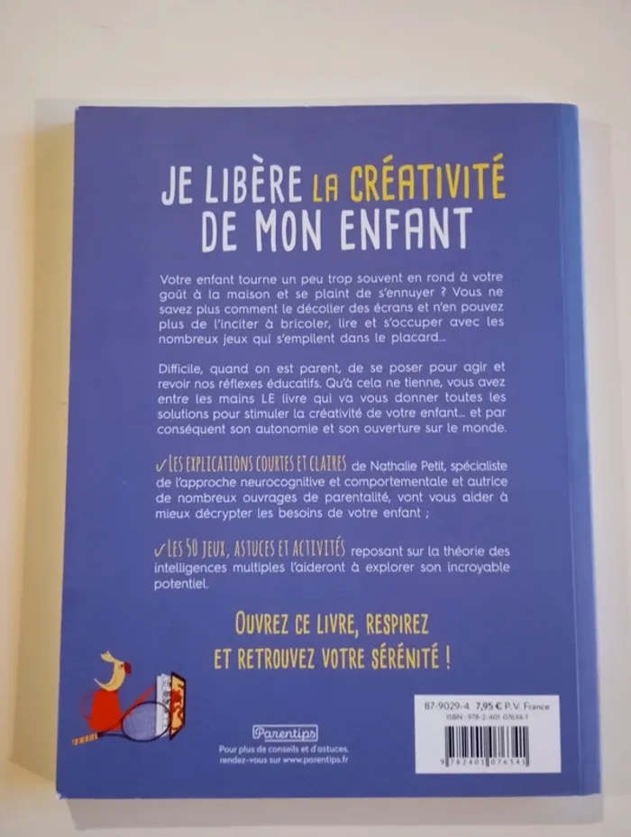 Votre enfant tourne un peu trop souvent en rond à votre goût à la maison et se plaint de s’ennuyer ? Vous ne savez plus comment le décoller des écrans et n’en pouvez plus de l’inciter à bricoler, lire et jouer avec les nombreux jeux qui s’empilent dans le placard… C’est d’autant plus agaçant quand on connaît le formidable potentiel créatif de nos enfants et leur imaginaire débordant. Difficile, quand on est parent, de se poser pour agir et revoir nos réflexes éducatifs. Vos journées, trop remplies, ne vous laissent pas le temps d’aborder avec zénitude toutes ces questions du quotidien. Qu’à cela ne tienne, vous avez entre les mains LE livre qui va vous donner toutes les solutions pour stimuler la créativité de votre enfant… et par conséquent son autonomie et son ouverture sur le monde. Les explications courtes et claires de Nathalie Petit, spécialiste de l’approche neurocognitive et comportementale et autrice de nombreux ouvrages de parentalité, vont vous aider à mieux décrypter les besoins de votre enfant ; Les 50 jeux, astuces et activités à lui proposer l’aideront à explorer son incroyable potentiel créatif par le biais de la théorie des intelligences multiples. Respirez, ouvrez ce livre et retrouvez votre sérénité ! Éditeur ‏ : ‎ Hatier Parents 96 pages Dimensions ‏ : ‎ 15.9 x 0.8 x 21 cm Livre NEUF #créativité #activité