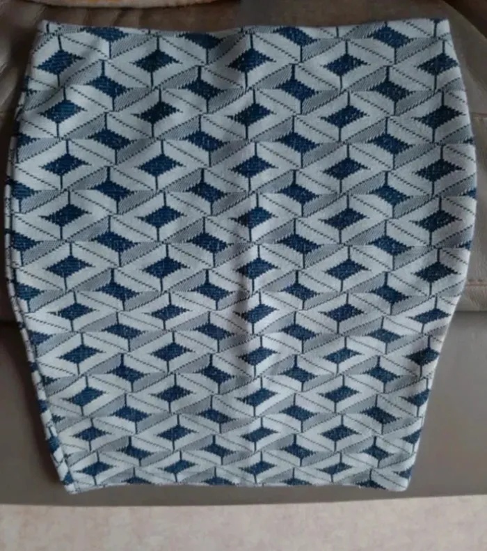 Jupe crayon et moulante Stradivarius taille S. Excellent état. Taille élastique. Motifs losanges. Je la vends au prix de 12 euros. #TailleS36marine
