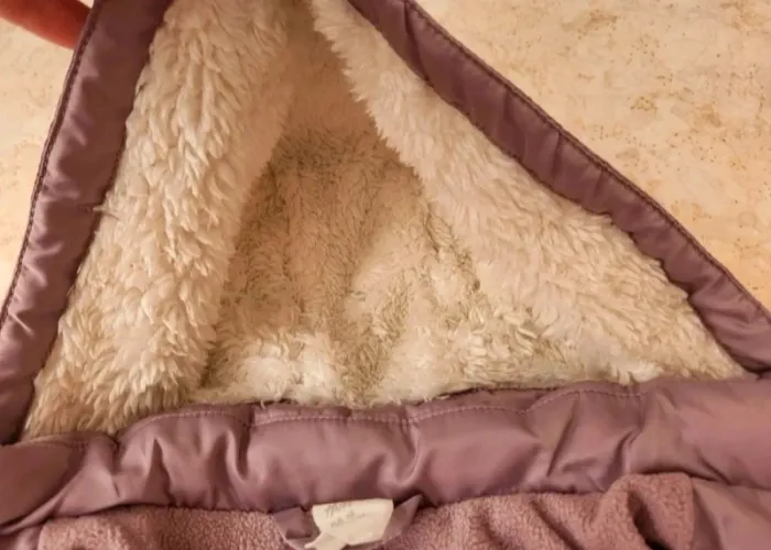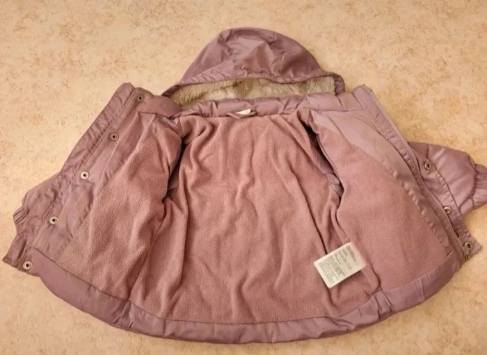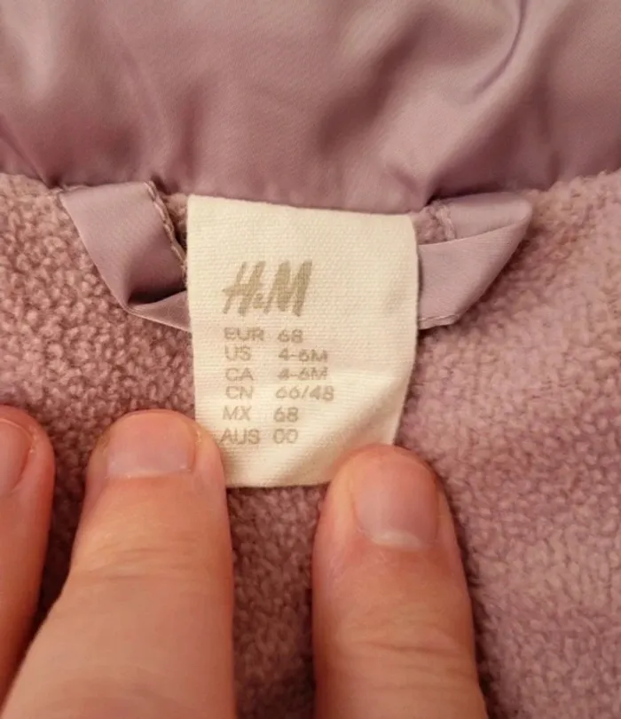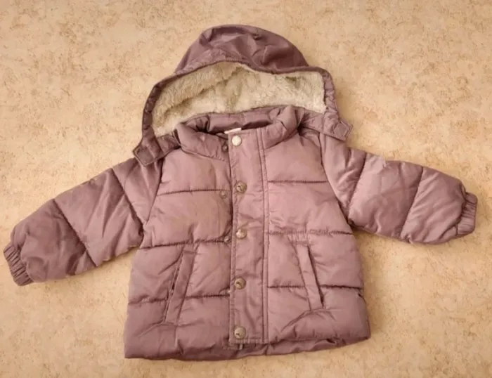 Jolie doudoune mauve H&M 68cm. Capuchon fourré blanc. Veste fourrée mauve. Tirette et pressions. Deux petites poches. Possible petite trace ou autre mais je n'ai rien vu de particulier. Je la vends au prix de 8 euros. #Enfantmarine