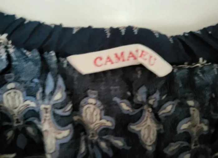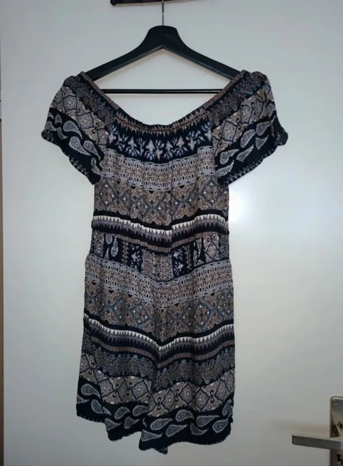 Jolie combishort à motifs dans les tons bleus. Camaïeu taille 40. Taille élastique, col bateau. Excellent état. Je la vends au prix de 13 euros. #TailleL40marine