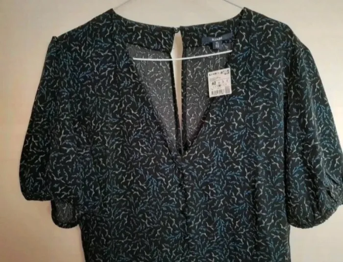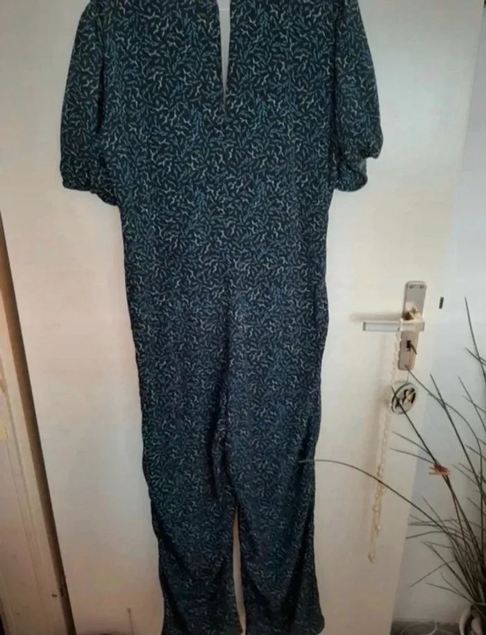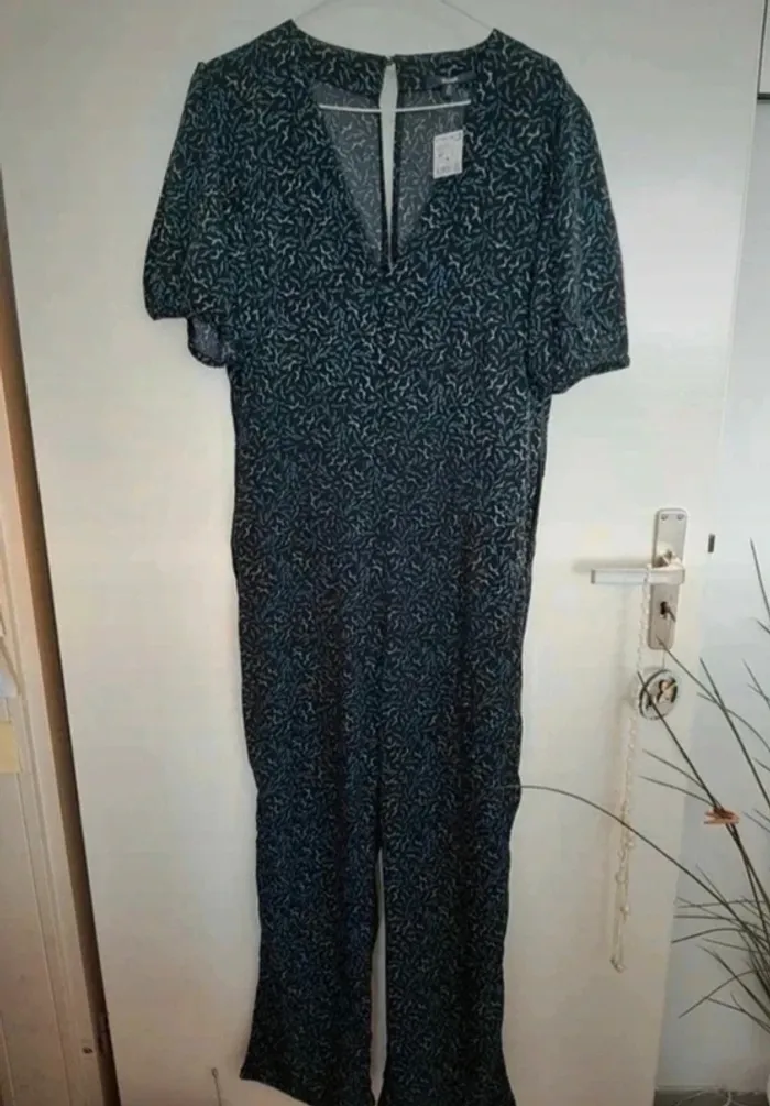 Belle combinaison bleue à motifs. Neuve avec étiquette, taille 40 de chez Kiabi. Manches un peu bouffantes, petit décolleté, poches. Je la vends au prix de 25 euros. #TailleL40marine