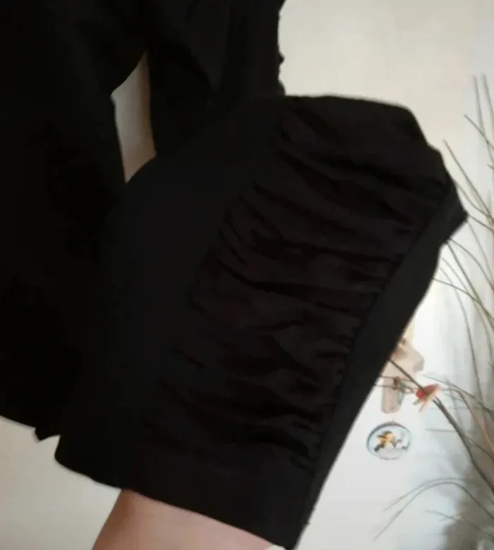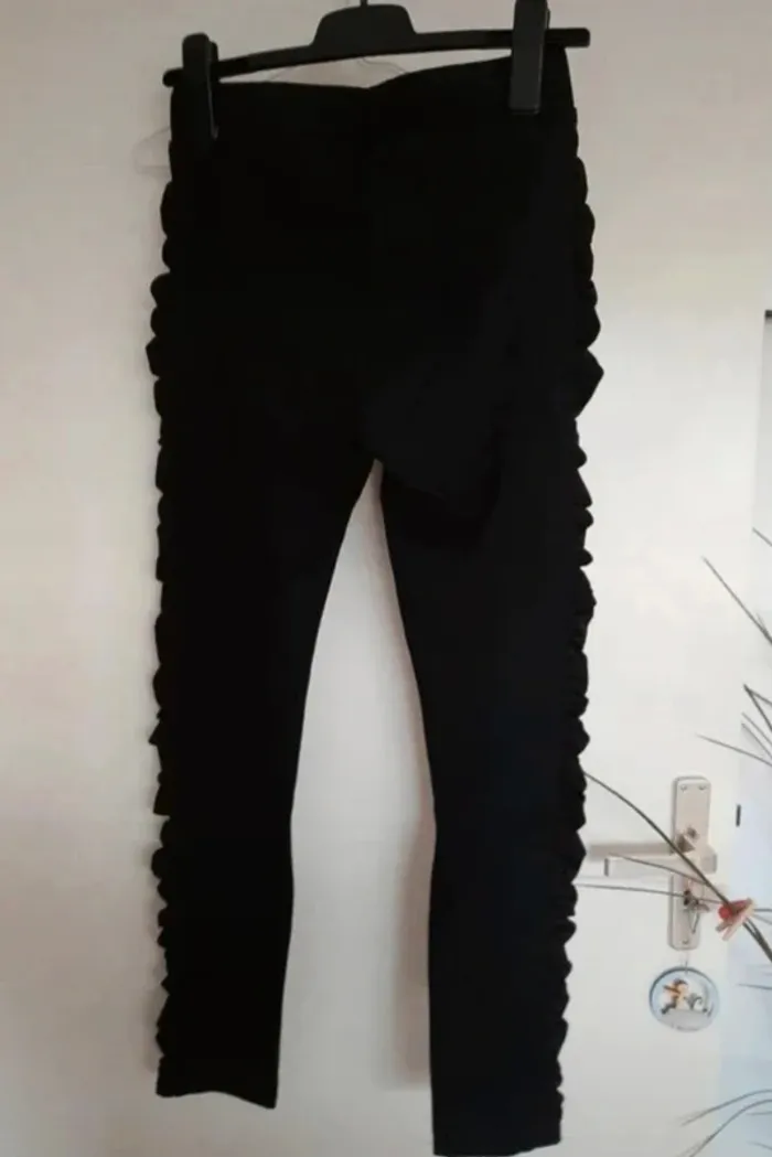Beau pantalon noir matière legging épais. Taille L mais je penche plus pour du M. Effet sur le côté. Deux fausses poches, tirettes dorées. Excellent état, pas certaine qu'il ait été porté. Je le vends au prix de 12 euros. #TailleM38marine