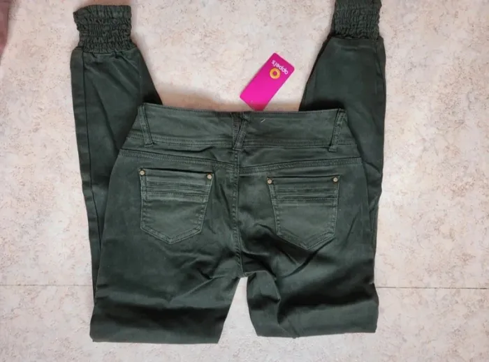 Pantalon genre jean vert. Resserré aux chevilles. Taille 38, neuf avec étiquette. Slim. Poches. Je le vends au prix de 14 euros. #TailleM38marine